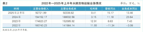 根據2025年半年報數據,寧波海運完成貨運量2521.28萬噸,同比增長16.90%;周轉量695.13億噸公里,同比增長28.63%;對應水路運輸業(yè)務收入9.27億元,同比增長15.17%。