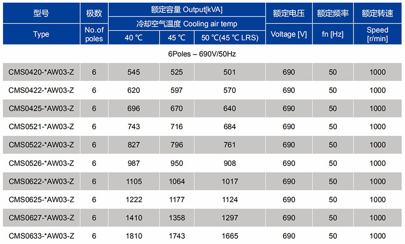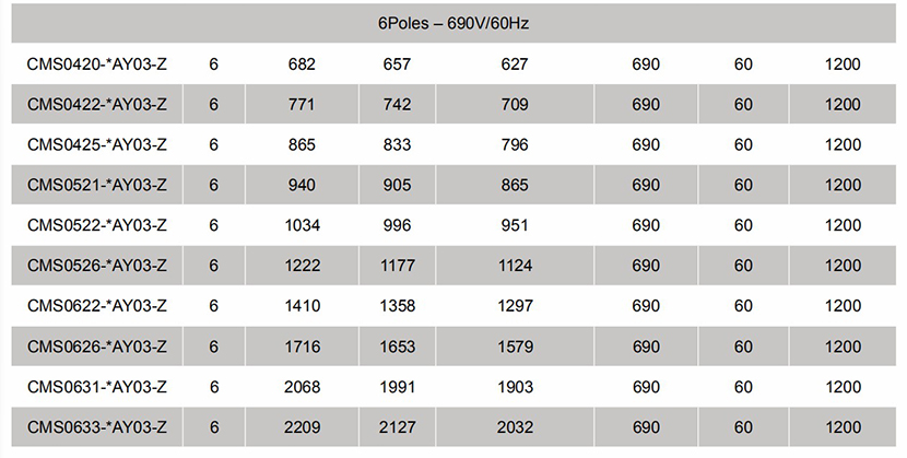 電壓: 690V 轉速: 1200rpm