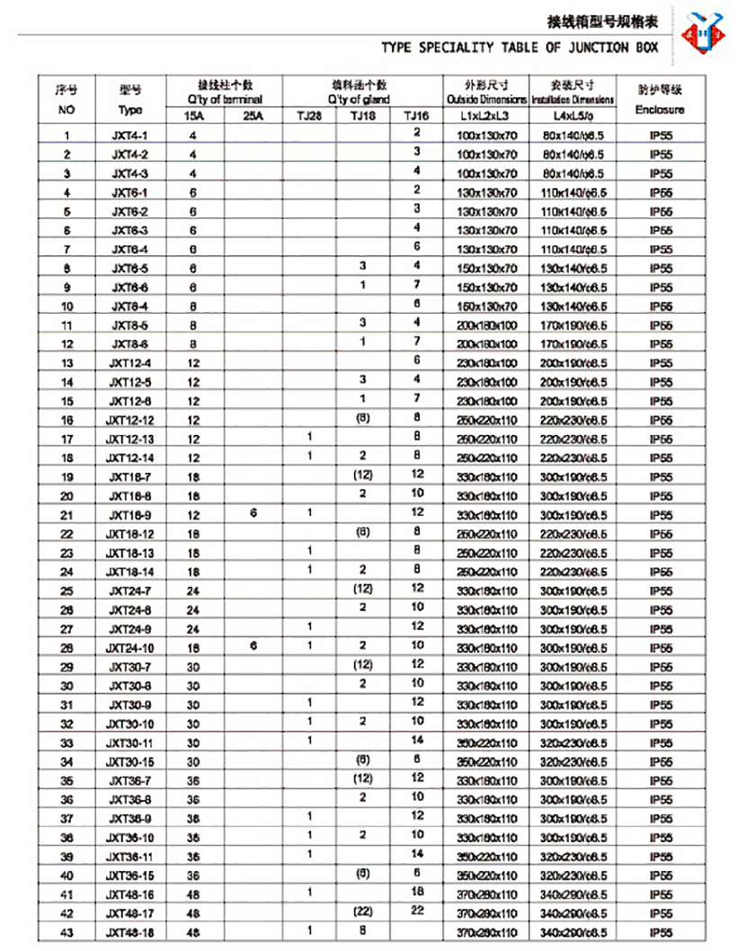 接線柱個數: 24 填料函個數: TJ16/12