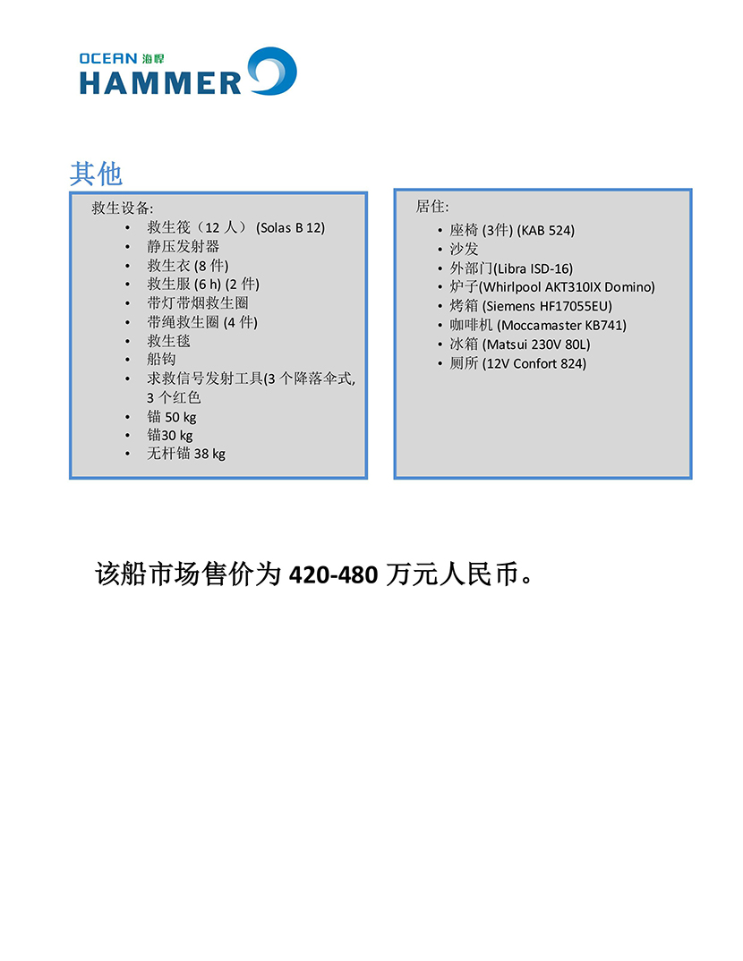 | 燃油容量: | 2×1000L | 船組人員: | 8P |