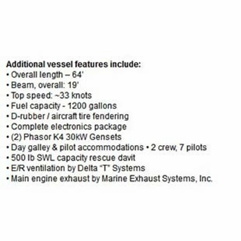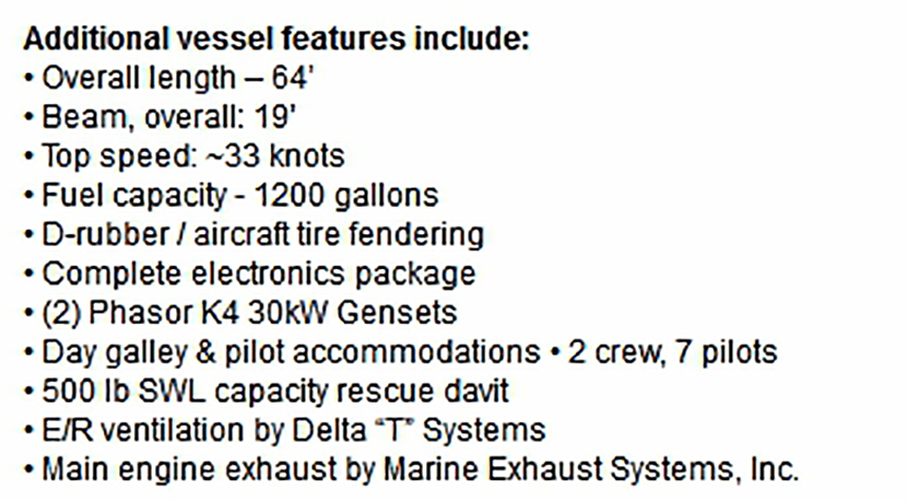 總長: 21m 燃油容量: 1200 gallons