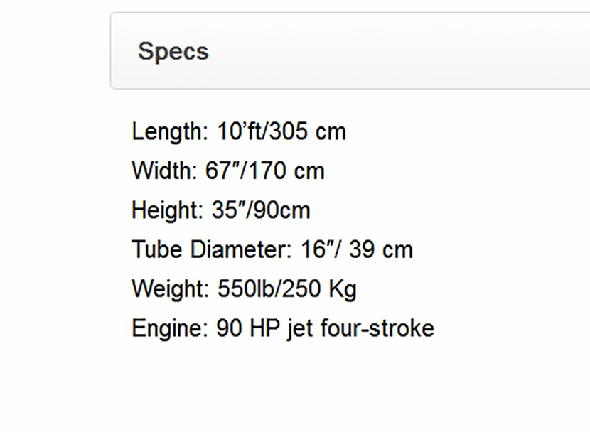| 總長: | 3.05m | 總重量: | 250kg |