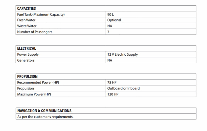 燃油容量: 90L 推進裝置: outboard/inboard
