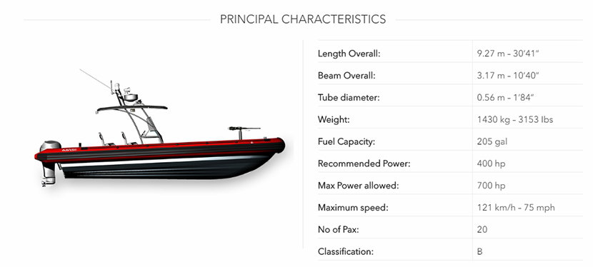 燃油容量: 775L 推進裝置: outboard/inboard