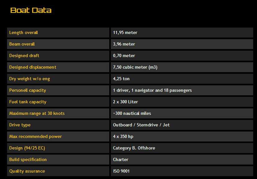 發動機功率: 4x350hp 型寬: 3.96m
