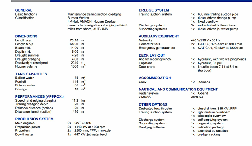 發動機功率: 2×1118kW at 1800rpm 推進裝置: 2×2200mm,FFP