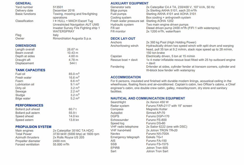 | 發動機品牌: | Caterpilar 3516C HD TA/C | 發動機功率: | 2×1865 kW at 1600rpm |
