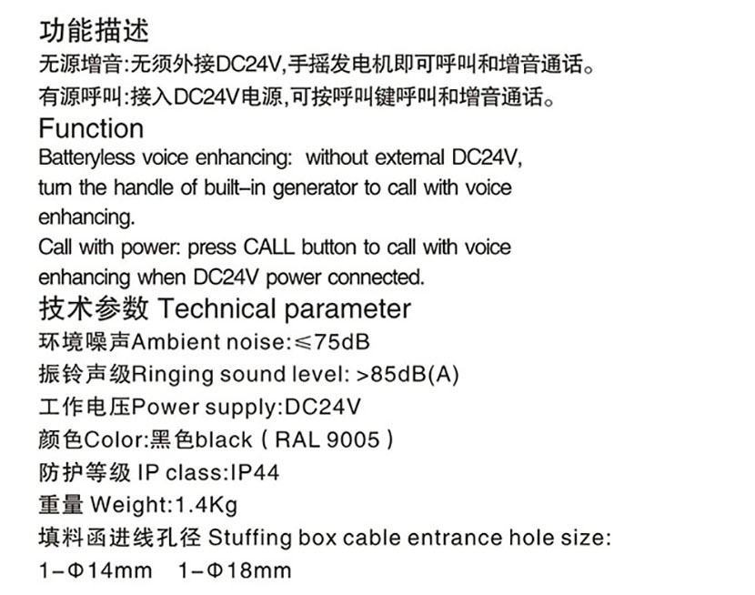 | 聲力電話機(直通壁掛式) | |||