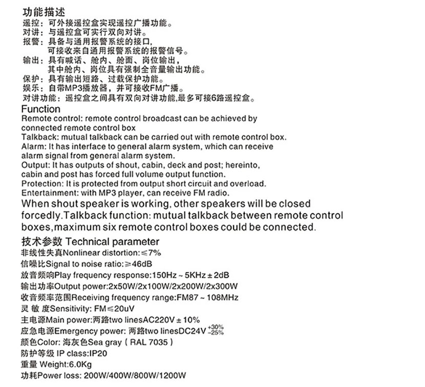 頻率: FM87~108MHz 重量: 6.0Kg