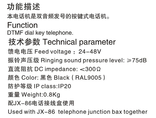 | 饋電電壓: | 24-48V | 振鈴聲壓級: | ≥75dB |