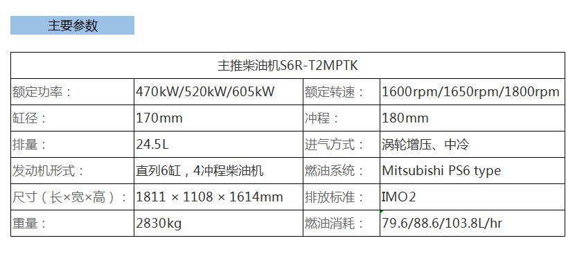 | 發動機形式: | 直列6缸,4沖程柴油機 | 燃油系統: | Mitsubishi PS6 type |