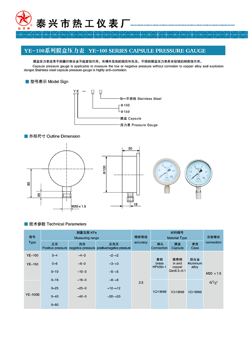 | YE-100系列膜盒壓力表 | |||