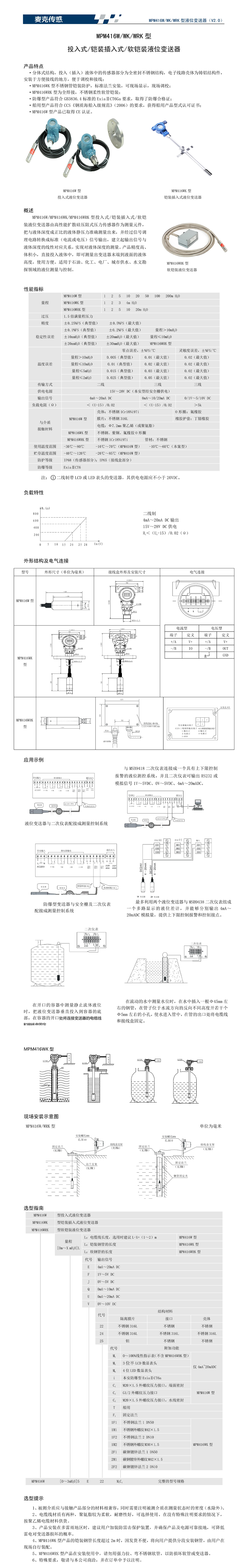 MPM416W型投入式液位變送器