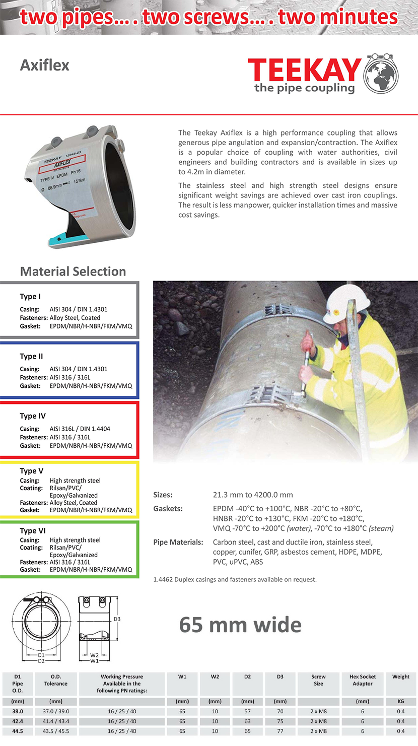 | 65mm寬 Axiflex管件脹縮免法蘭接頭 | |||