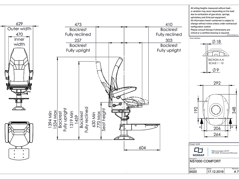 | 1000系列基礎型可調高度船用座椅 | |||